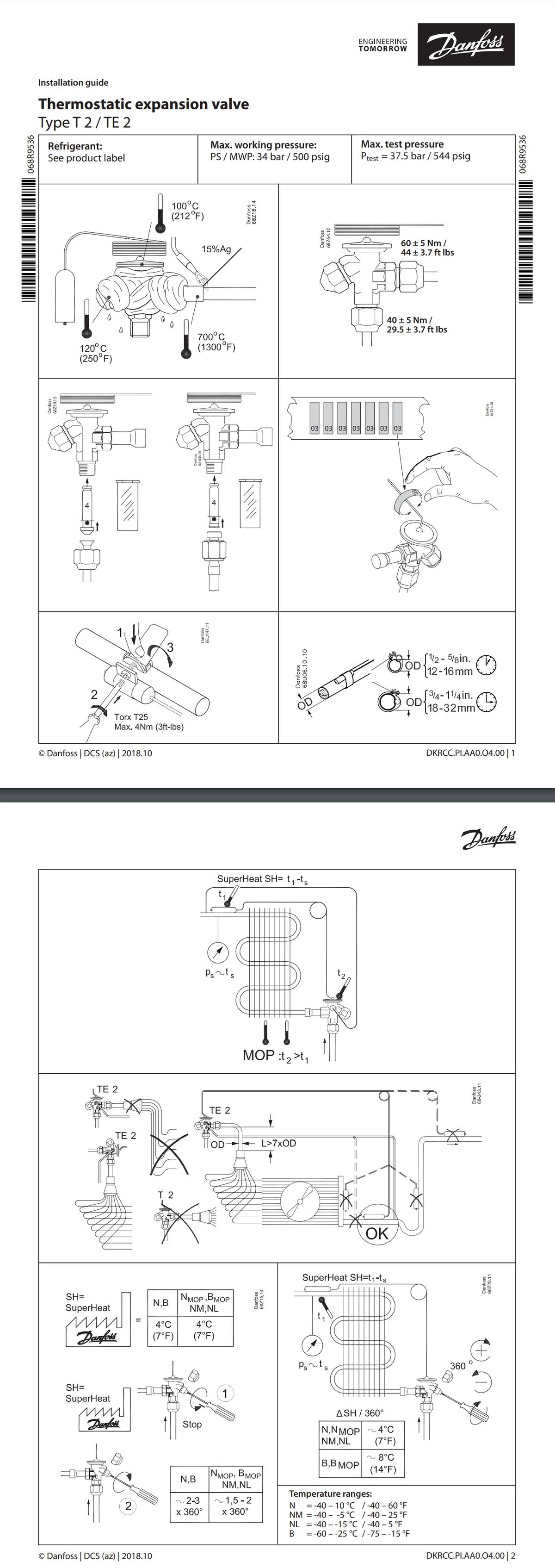 댄포스 감온식 팽창밸브 T2 TE2 시리즈 / R22 R407C R404A R134a