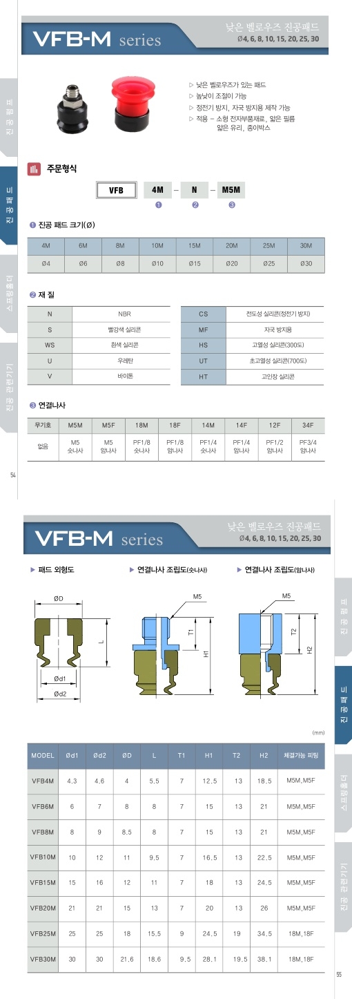 VFB-M 시리즈 낮은 벨로우즈 진공패드