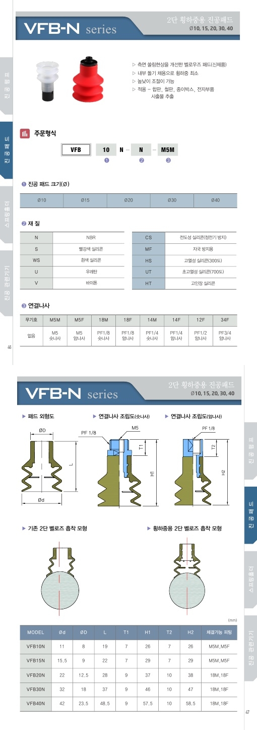 VFB-N 시리즈 2단 횡하중용 진공패드