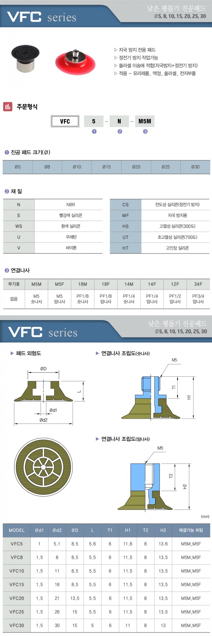 VFC 시리즈 낮은 평돌기 진공패드