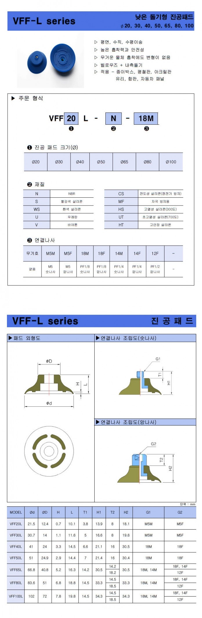 VFF-L 시리즈 낮은 돌기형 진공패드
