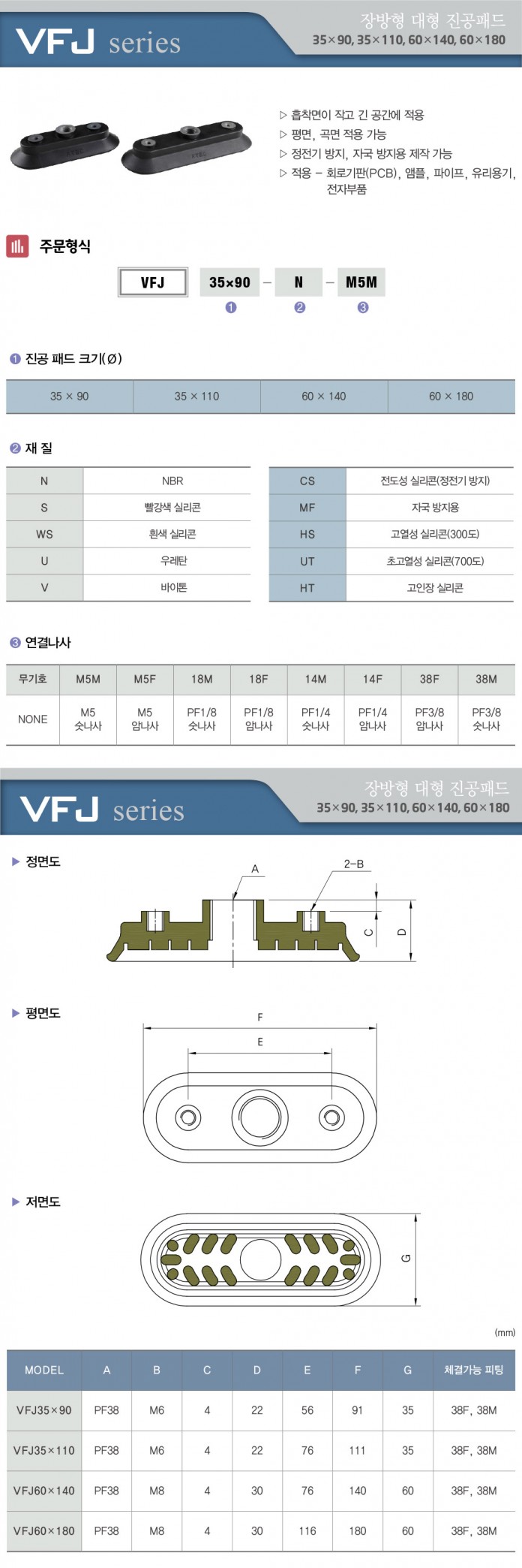 VFJ 시리즈 장방향 대형 진공패드