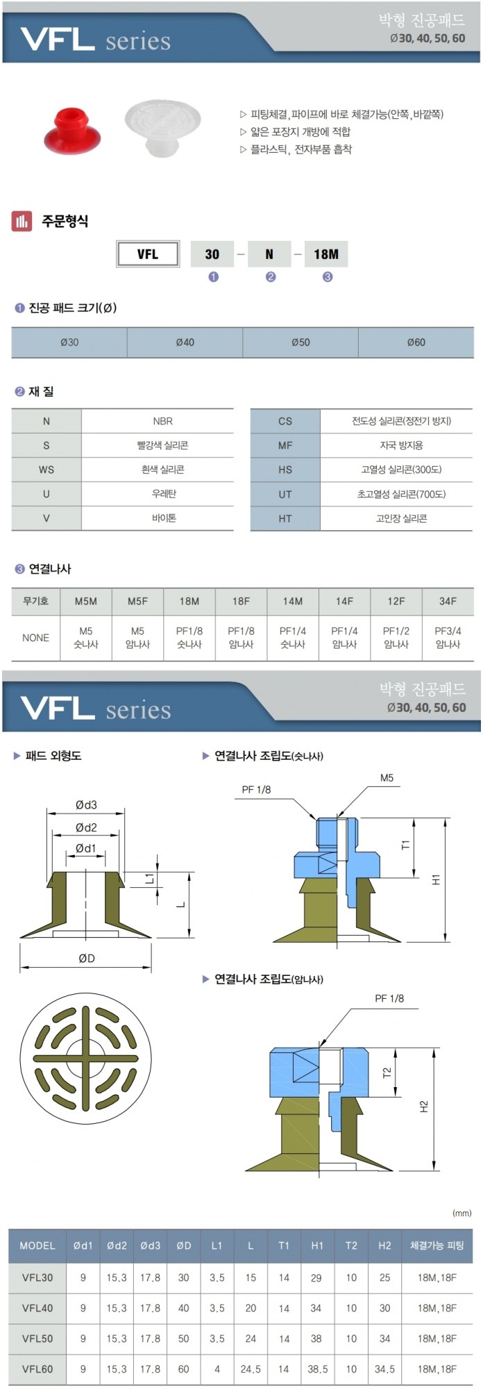피팅 체결, 파이프 바로 체결 가능 (안쪽, 바깥쪽) 얇은 포장지 개방 적합 플라스틱, 전자부품 흡착 |
