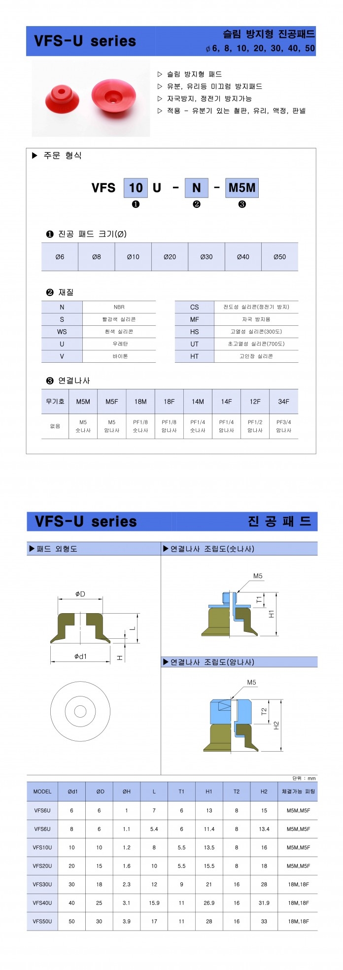 VFS-U 시리즈 슬림 방지형 진공패드