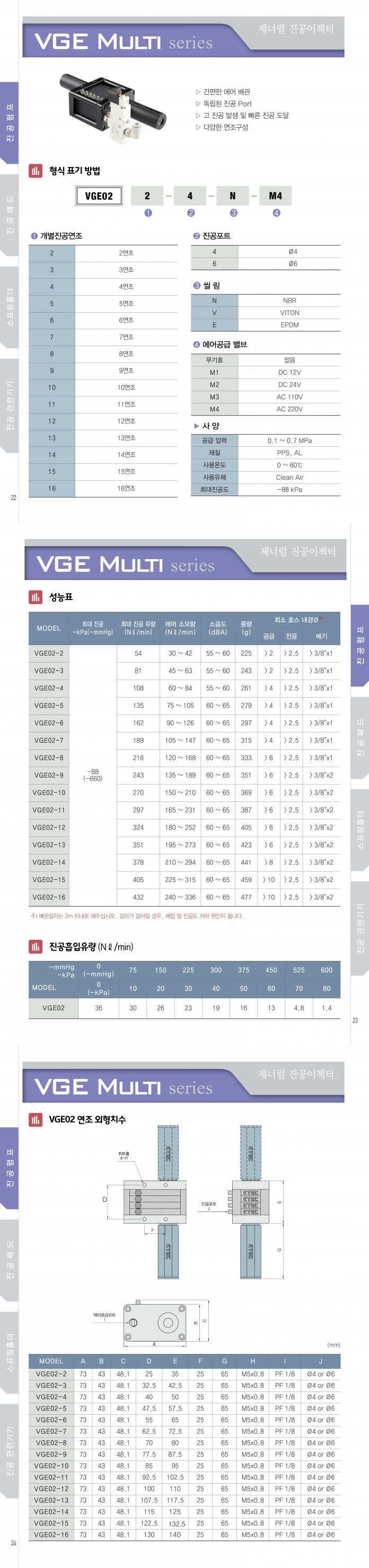 VGE MULTI 시리즈 제너럴 진공 이젝터