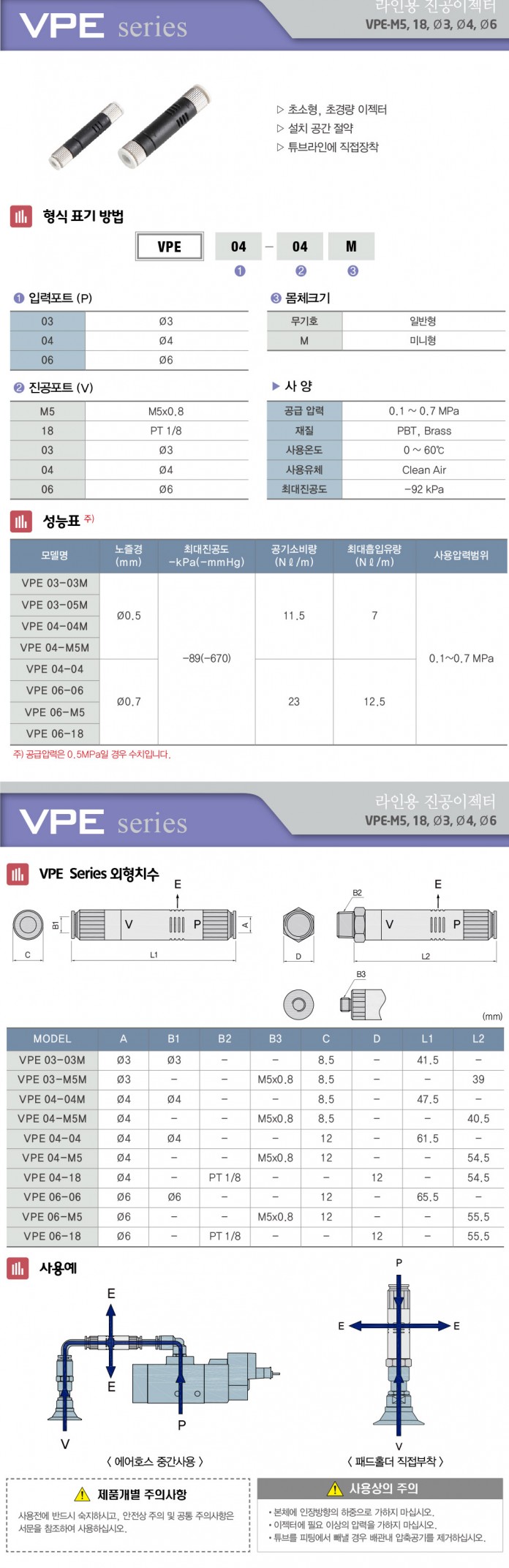 라인용 진공이젝터 초소형, 초경량 설치 공간 절약 튜브 라인 적합 |