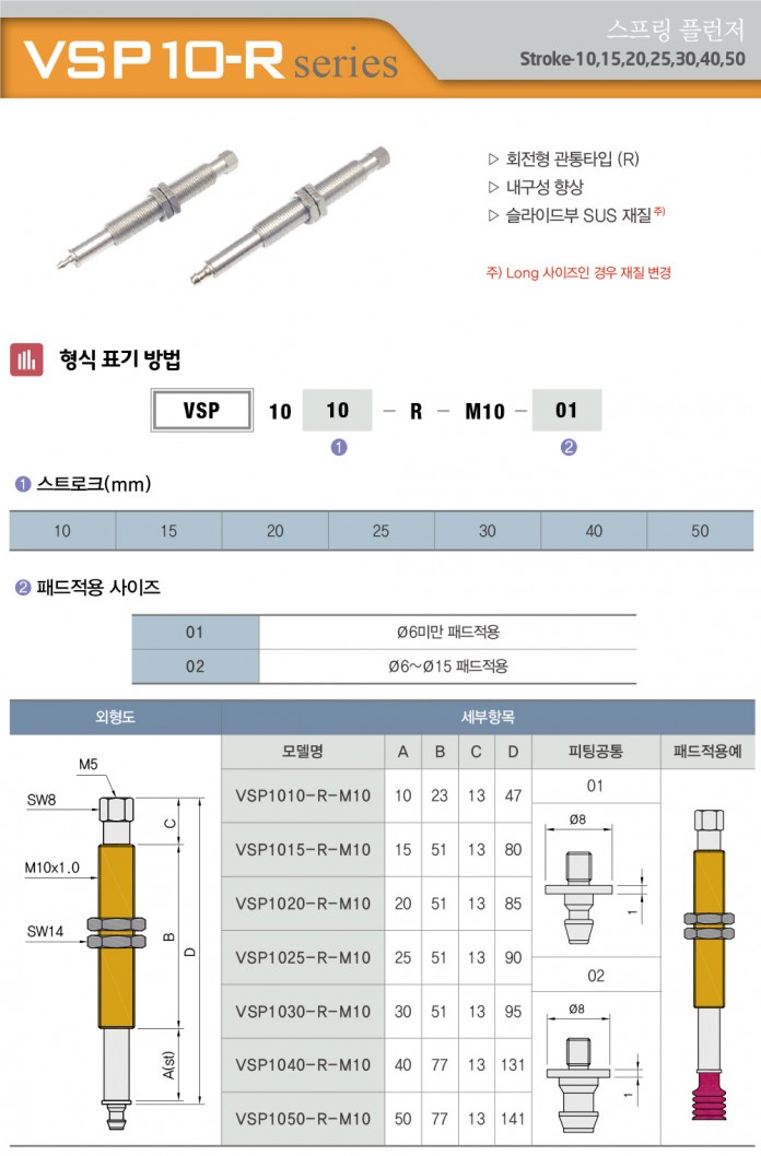 VSP10-R 시리즈 스프링 플런저 / Stroke 10, 15, 20, 25, 30, 40, 50