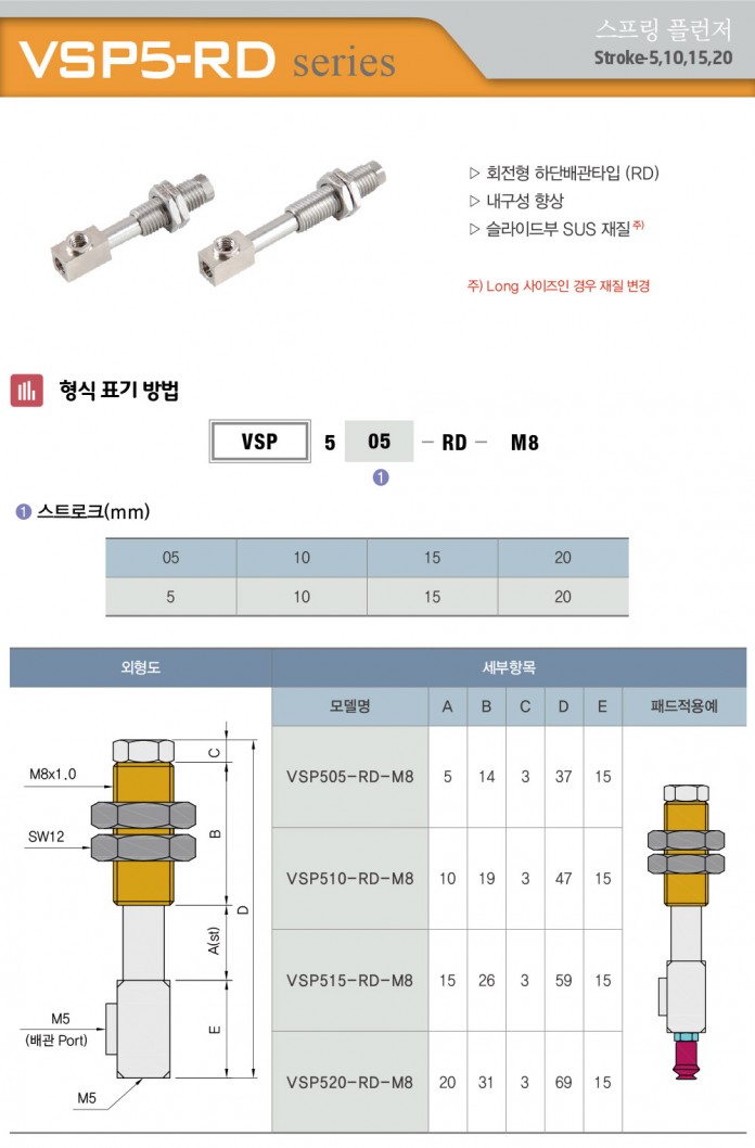 VSP5-RD 시리즈 스프링 플런저 / Stroke 5, 10, 15, 20
