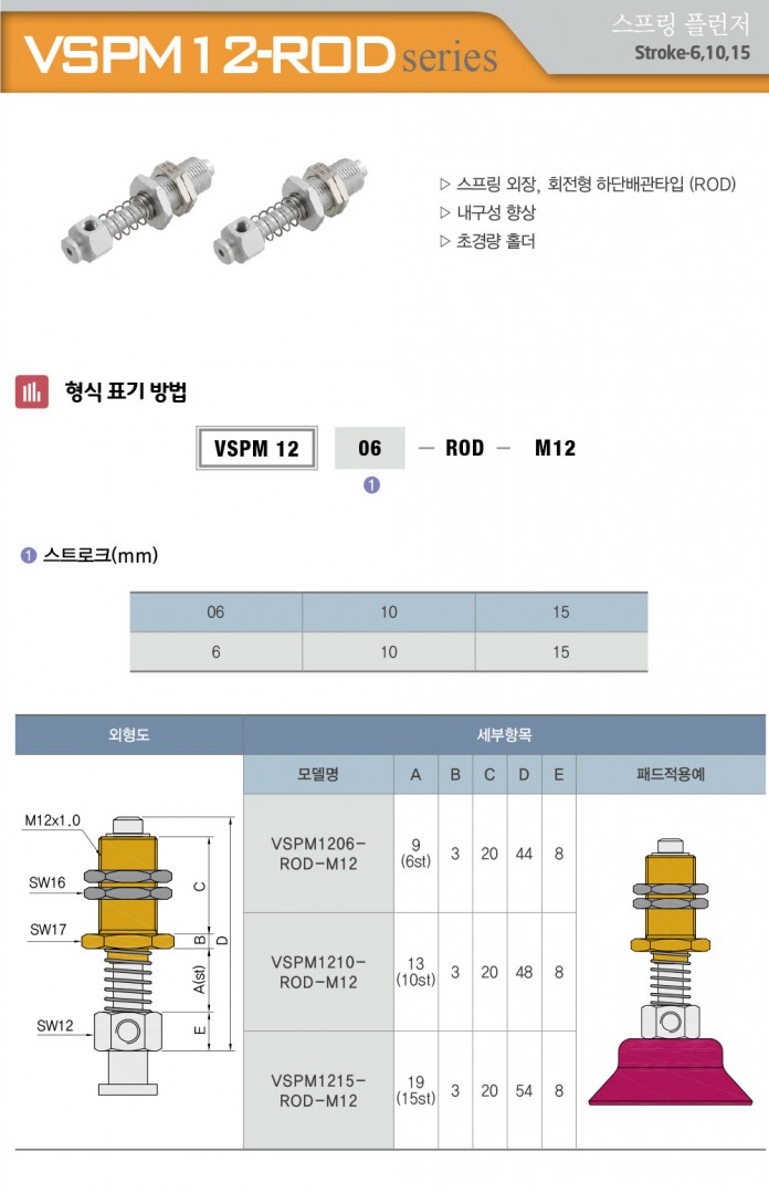 VSPM12-ROD 시리즈 스프링 플런저 / Stroke 6, 10, 15