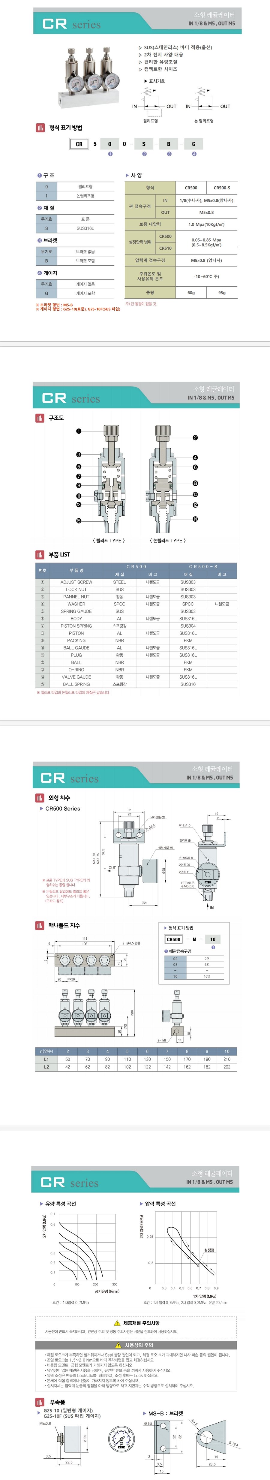 CR 500 시리즈 소형 R1/8 (M5), 0.05~0.85 Mpa SUS316 재질 옵션