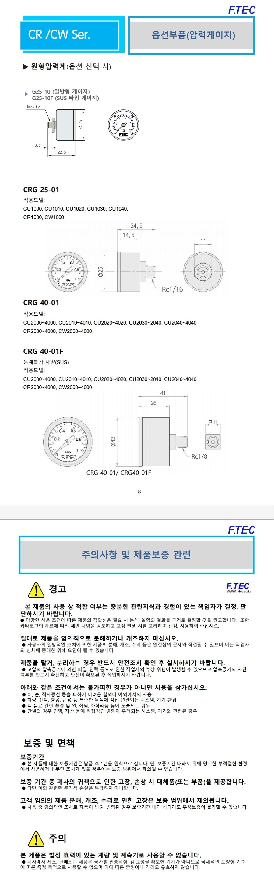 | 상세정보 | 레귤레이터용 원형 압력게이지 (SUS 옵션) |