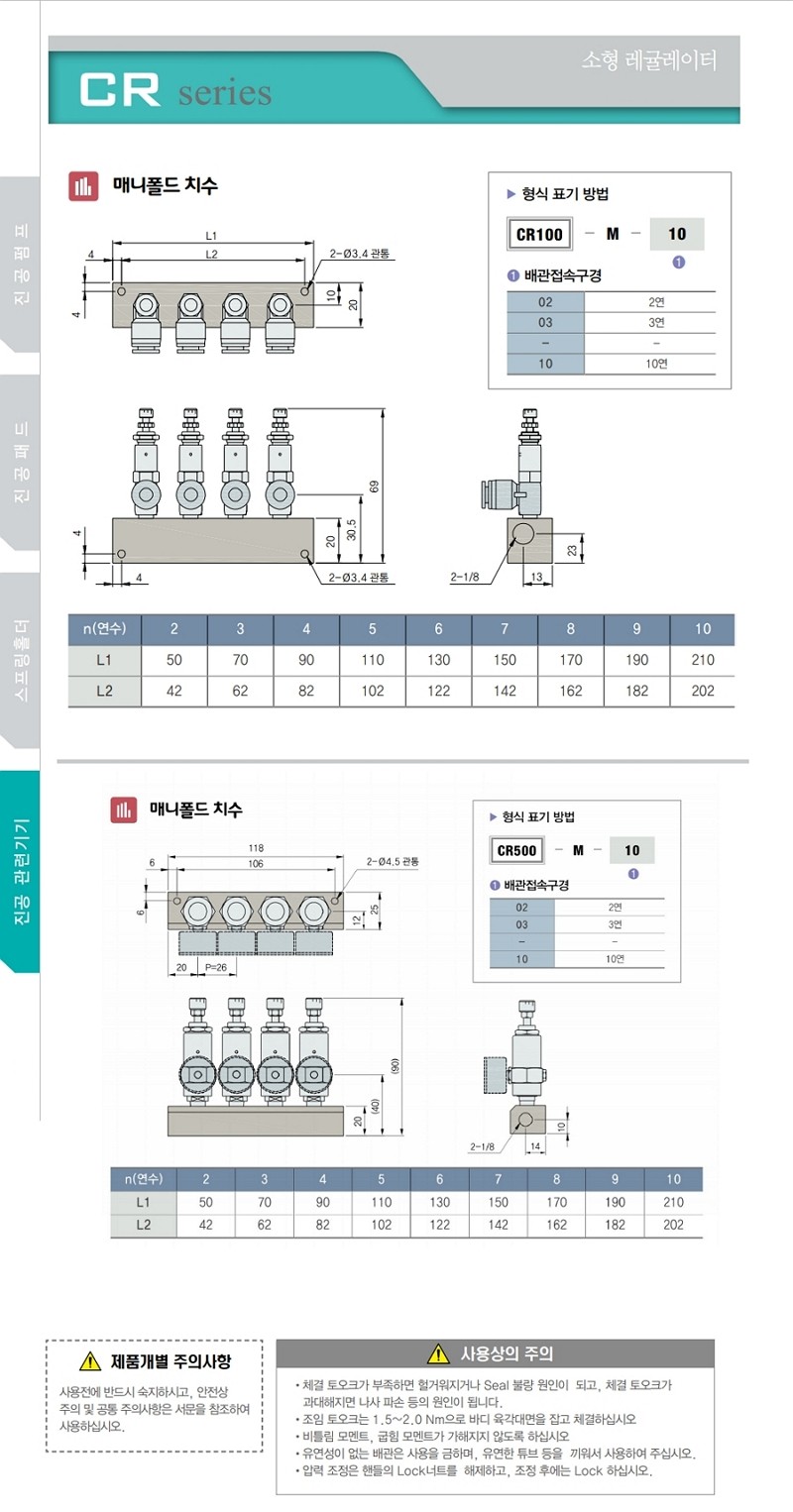 CR 소형 시리즈용 매니폴드 블록 (CR100-M, CR500-M)