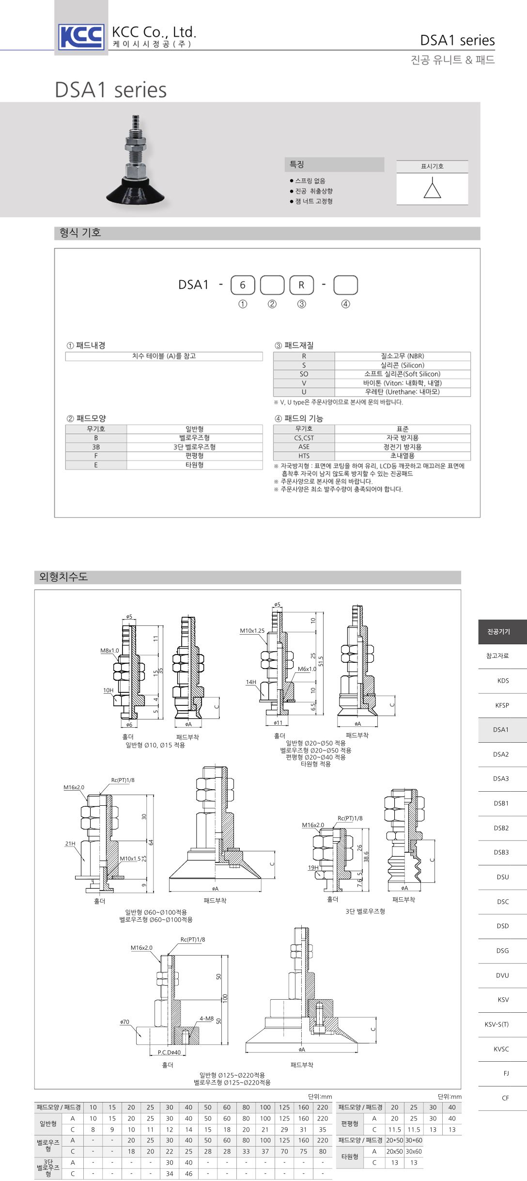 DSA1 진공유니트 / 패드경-패드모양-패드재질