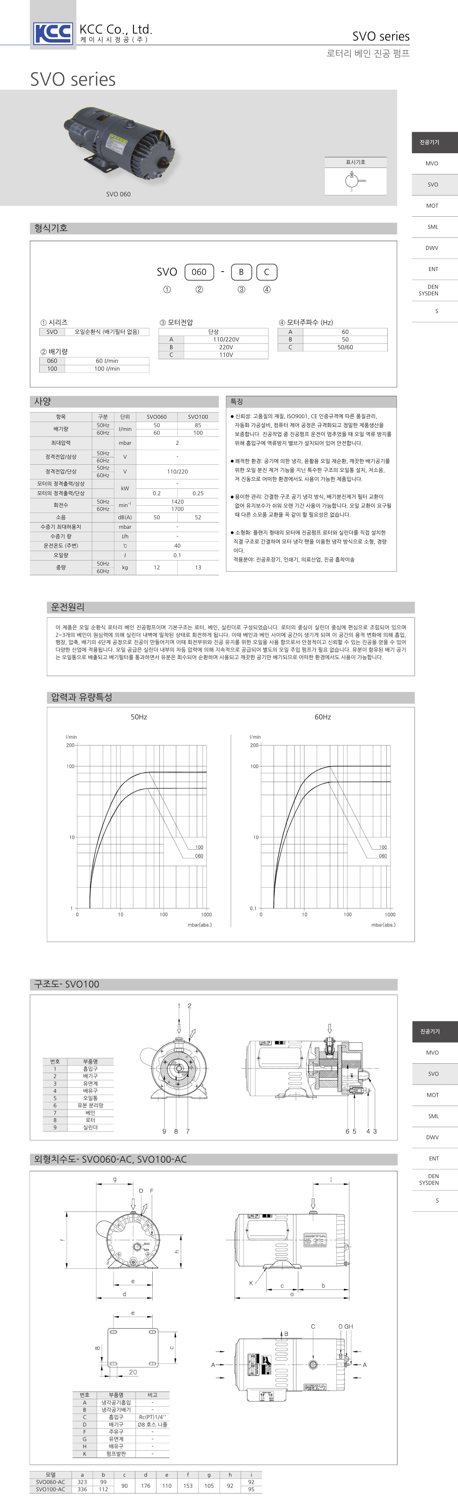 SVO 진공펌프 / 배기량-모터전압-모터주파수