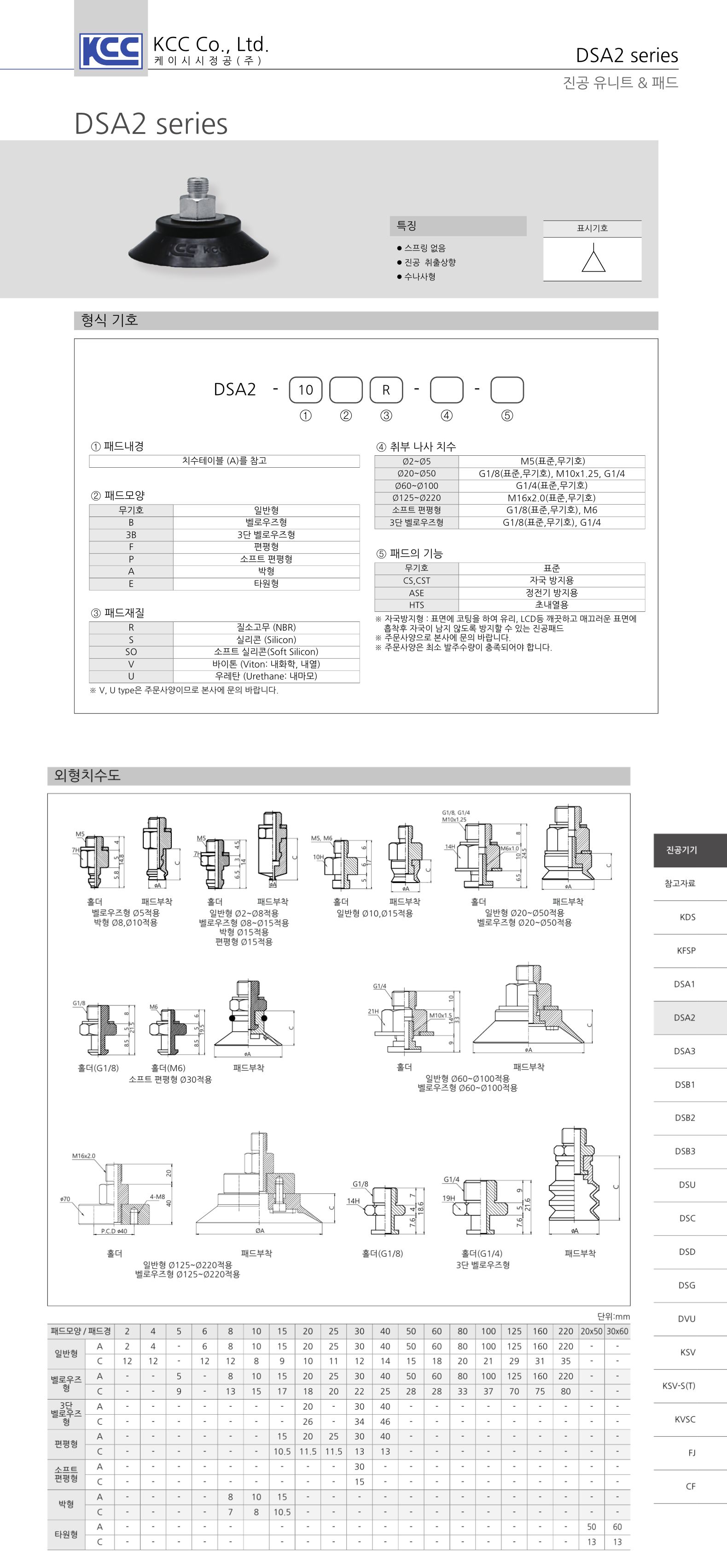 DSA2 진공유니트 / 패드경-패드모양-패드재질