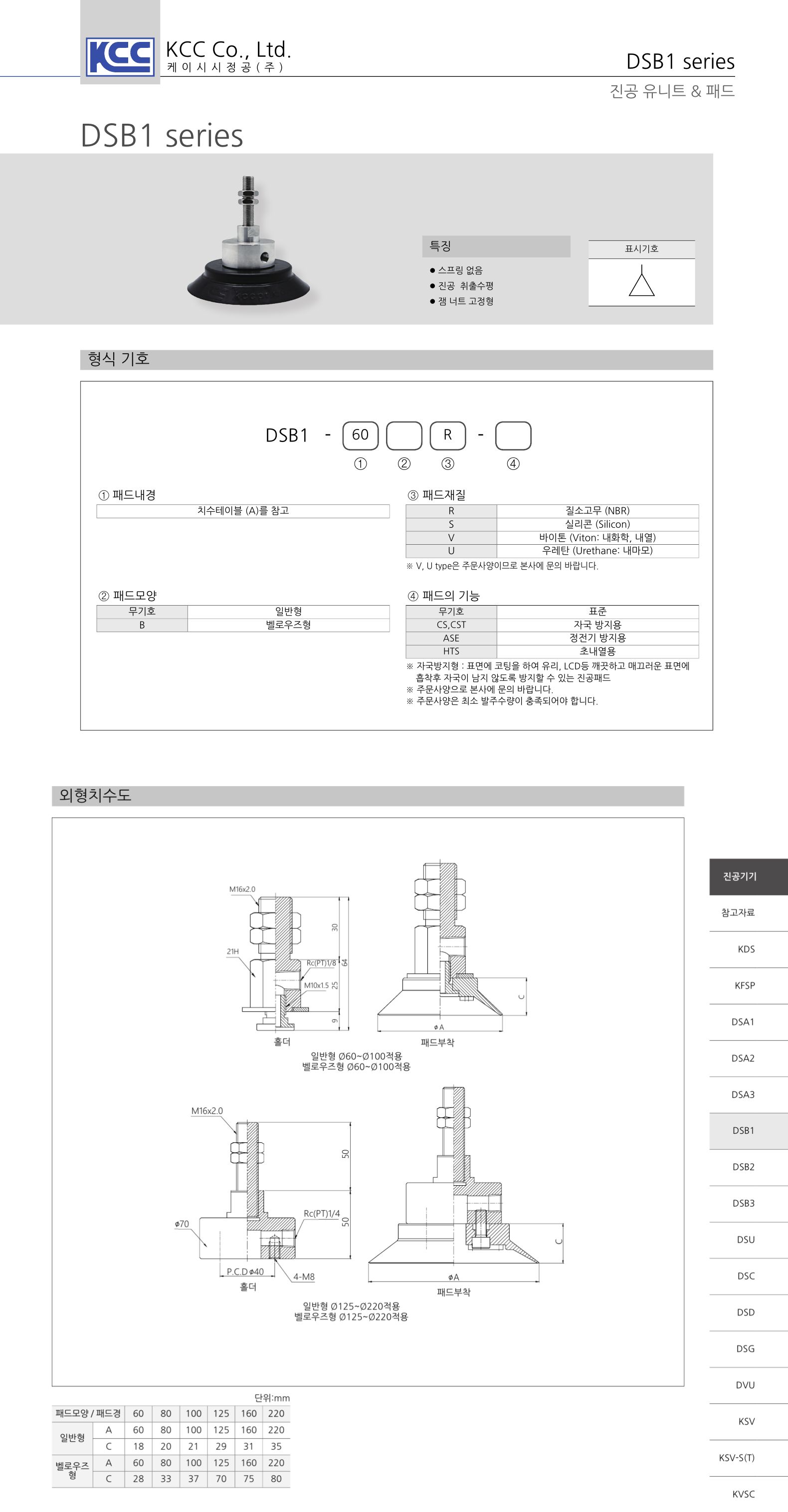 DSB1 진공유니트 / 패드경-패드모양-패드재질