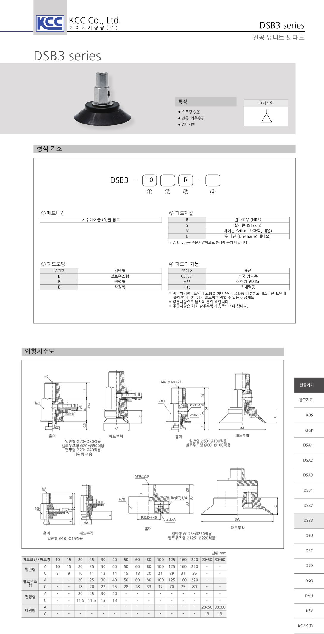 DSB3 진공유니트 / 패드경-패드모양-패드재질