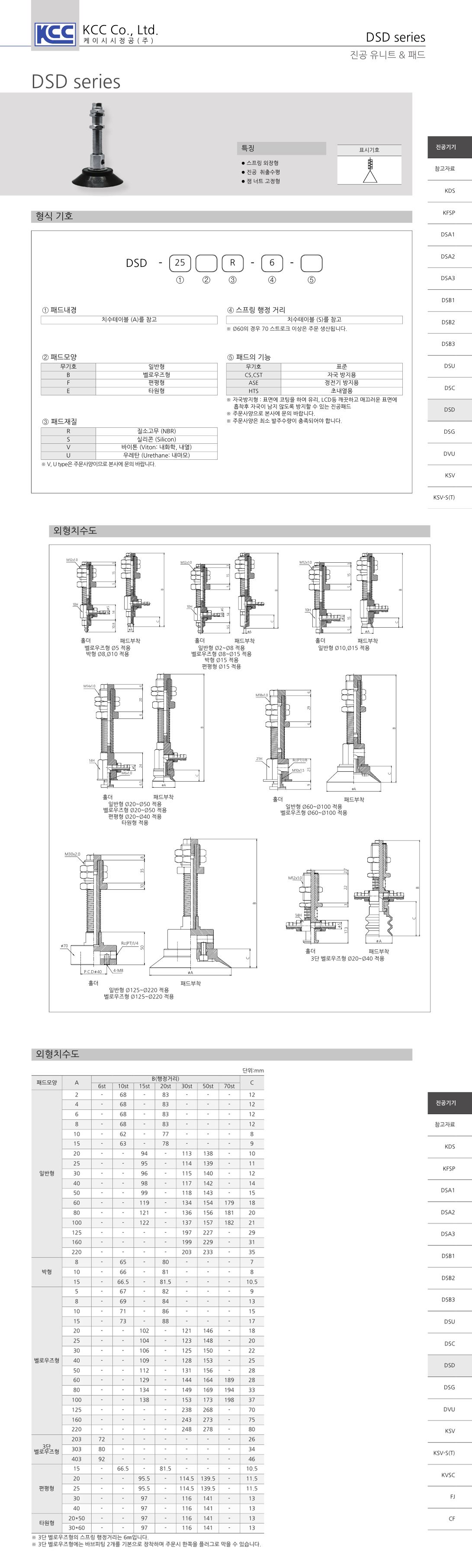 DSD 진공유니트 질소고무 / 패드경-패드모양-스프링행정거리