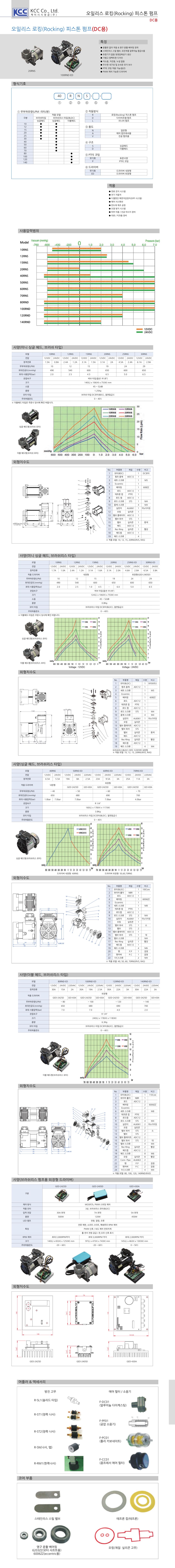 RN(DC용) 오일리스 로킹(Rocking) 피스톤 펌프 / 무부하유량-작동방식-용도-구조-PTFE코팅-드라이버-모터타입