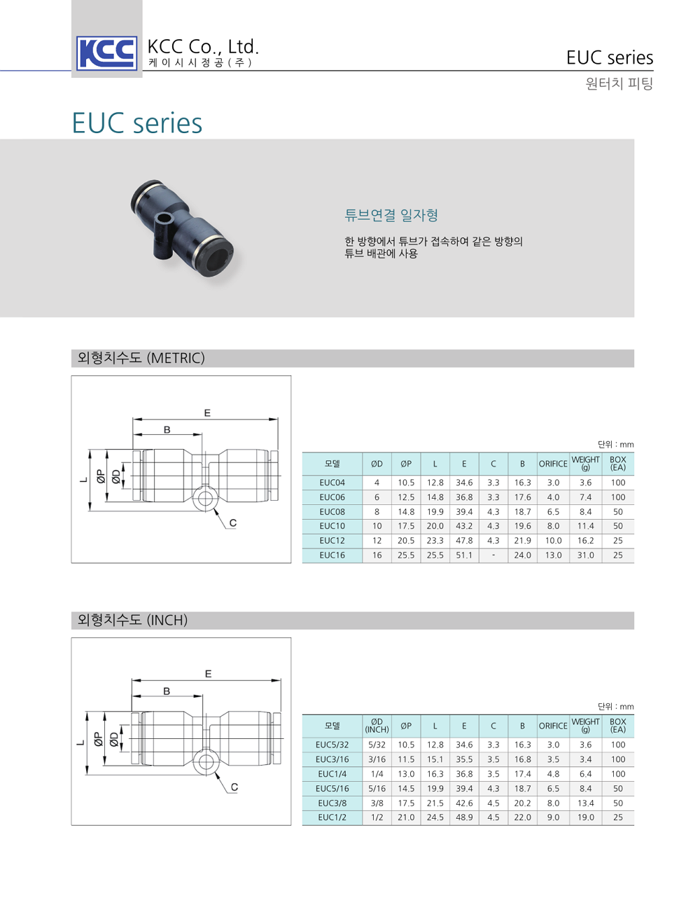 적용튜브외경 INCH타입은 별도 문의 바랍니다.
