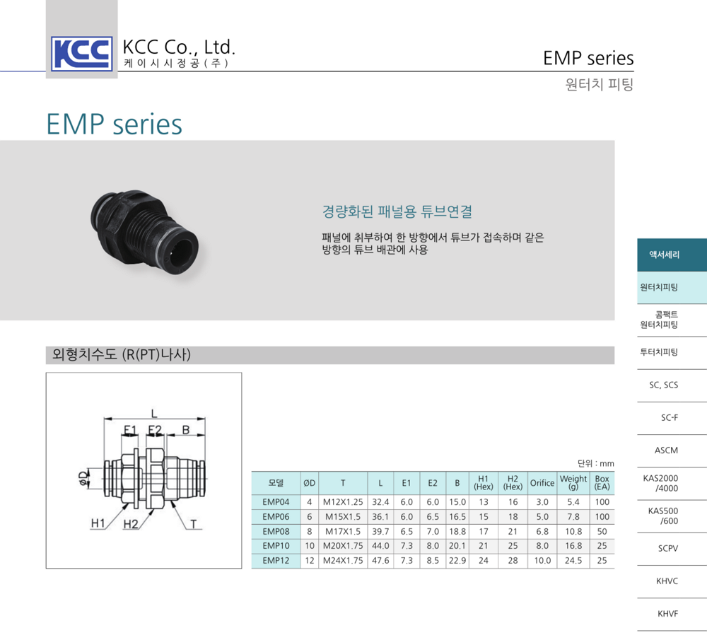 적용튜브외경 INCH타입은 별도 문의 바랍니다.