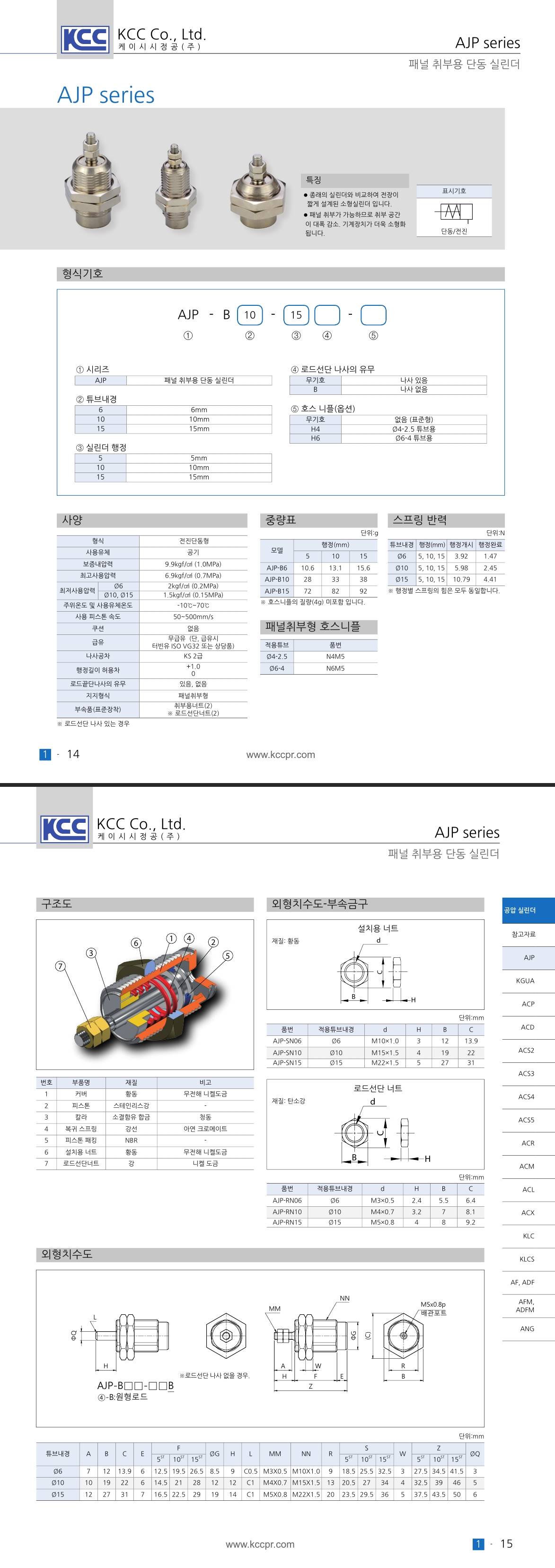 [AJP 시리즈] 패널취부 단동전진형, 내경 6,10,39 파이 + 튜브피팅옵션