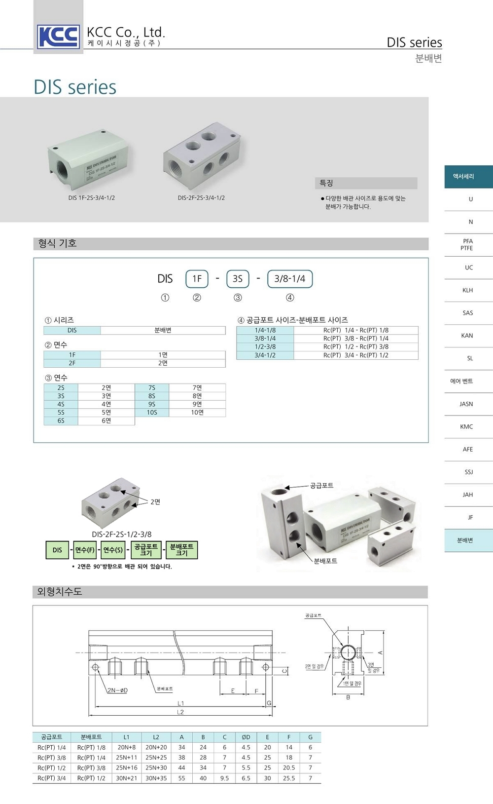 DIS 시리즈 공급포트 Rc(PT) - 분배포트 Rc(PT) 이경 사이즈