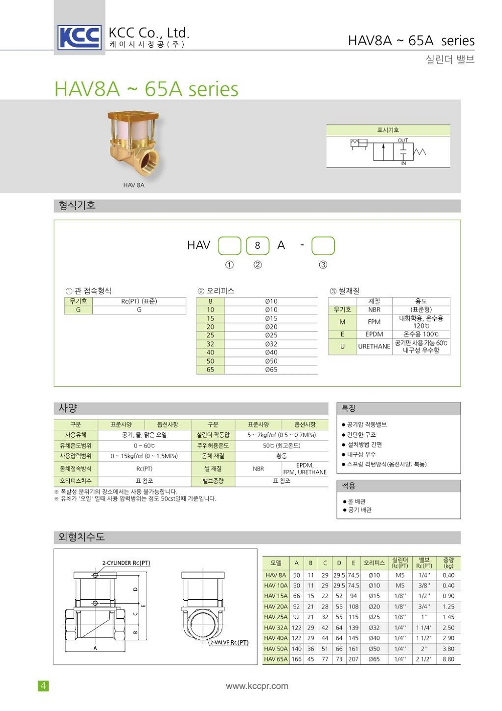 HAV 시리즈 2포트 암나사 공압작동식, Rc(PT) 1-1/4 ~ 2인치