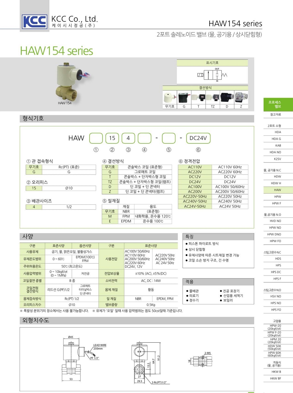 HAW 154 시리즈 Rc(PT) 1/2 소형 2포트 피스톤 파일럿 방식