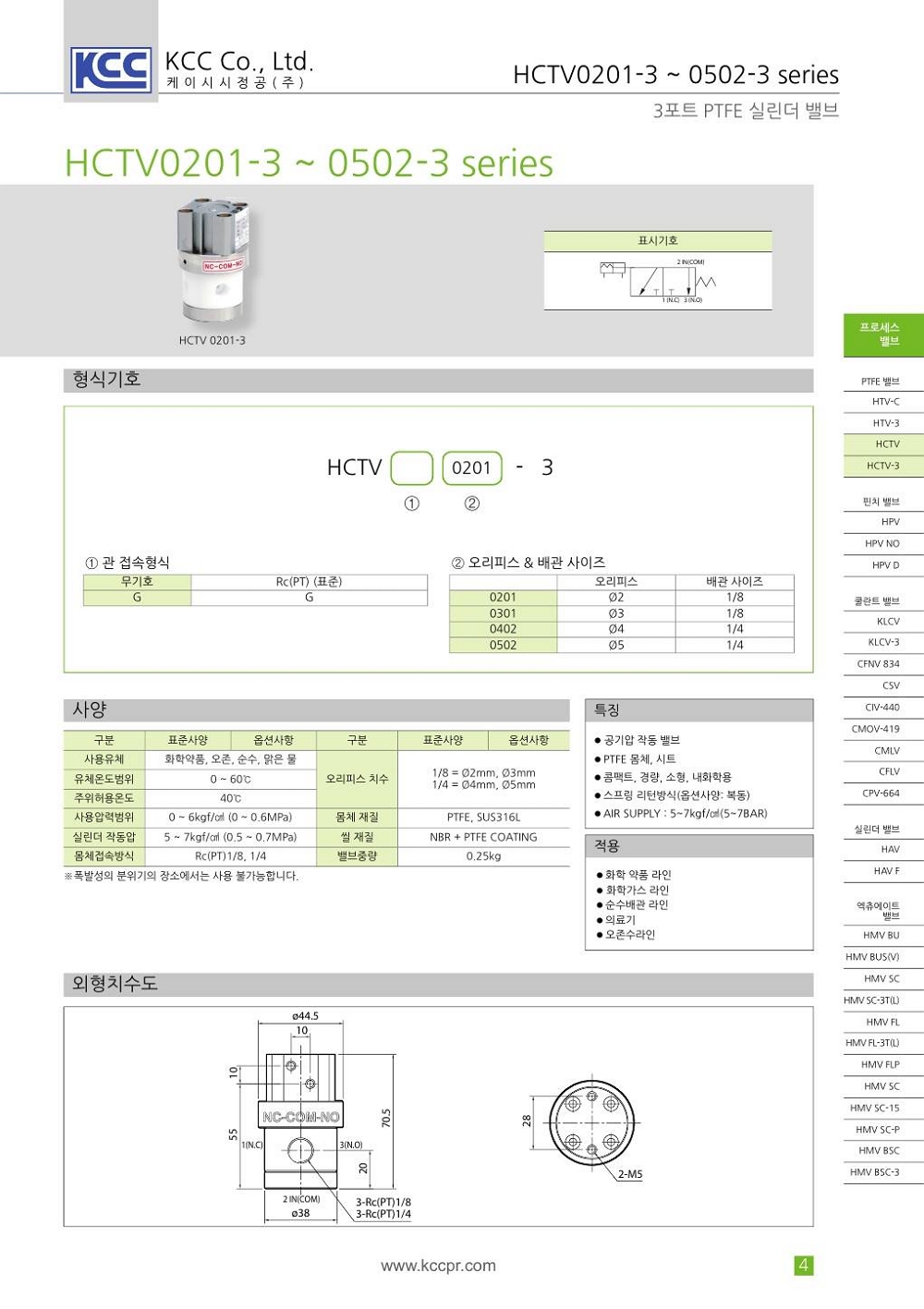 HCTV-3 시리즈 3포트 암나사 Rc(PT) 1/8, 1/4 (화학약품 오존 순수유체)
