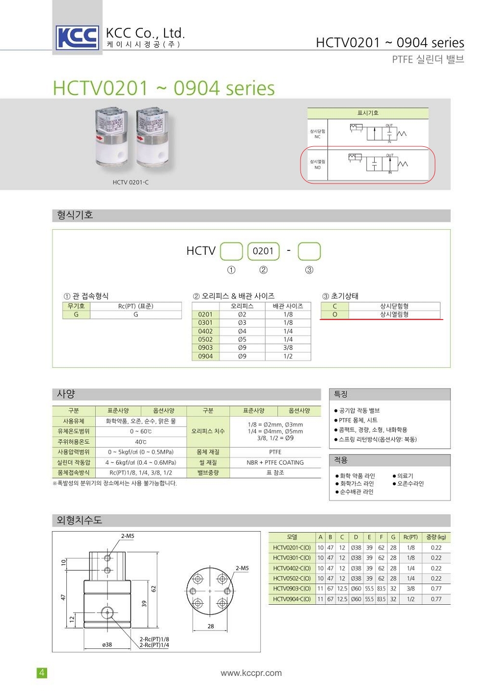 HCTV 시리즈 2포트 암나사 Rc(PT) 1/8, 1/4, 3/8, 1/2 (화학약품 오존 순수유체 등)