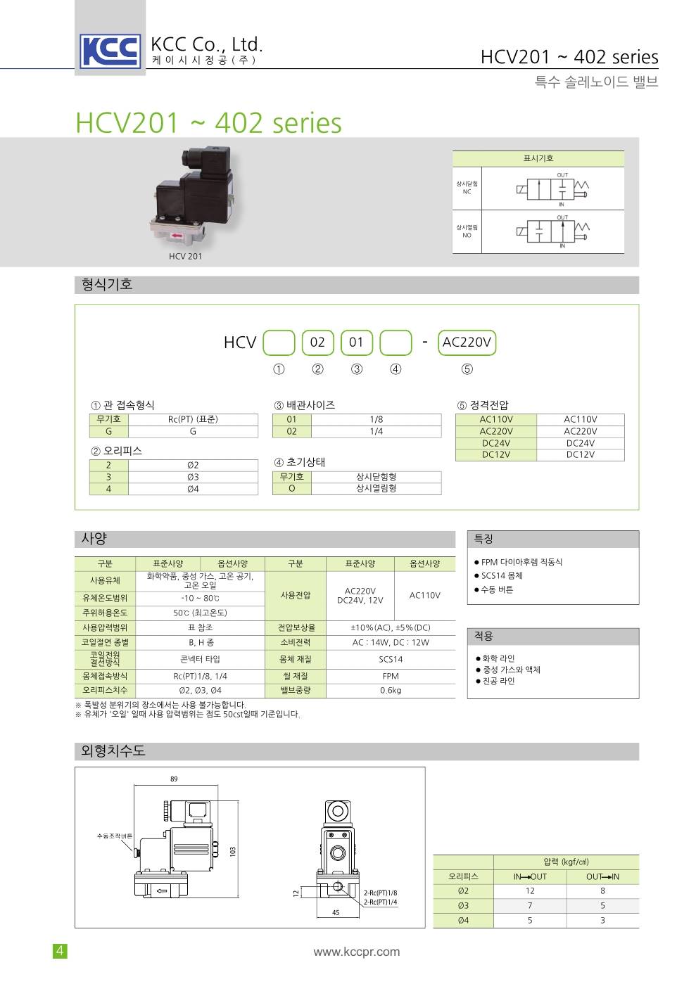 HCV 시리즈 소형 2포트 암나사 Rc(PT) 1/8, 1/4
