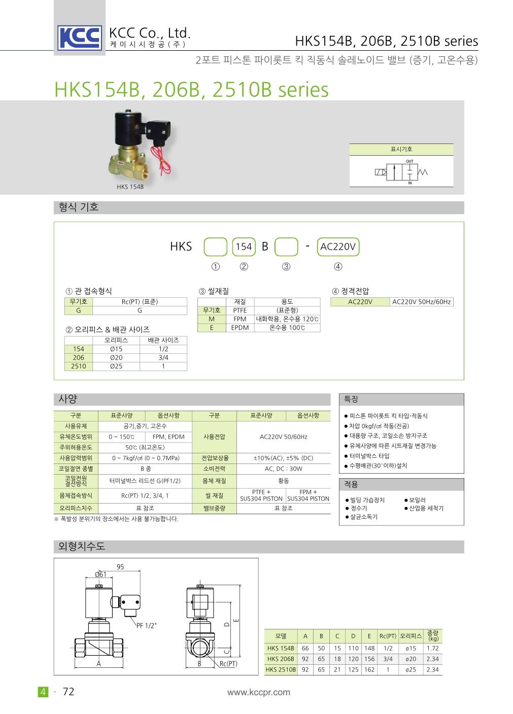 HKS 154B 206B 2510B 시리즈 2포트 암나사 Rc(PT) 1/2 ~ 1인치