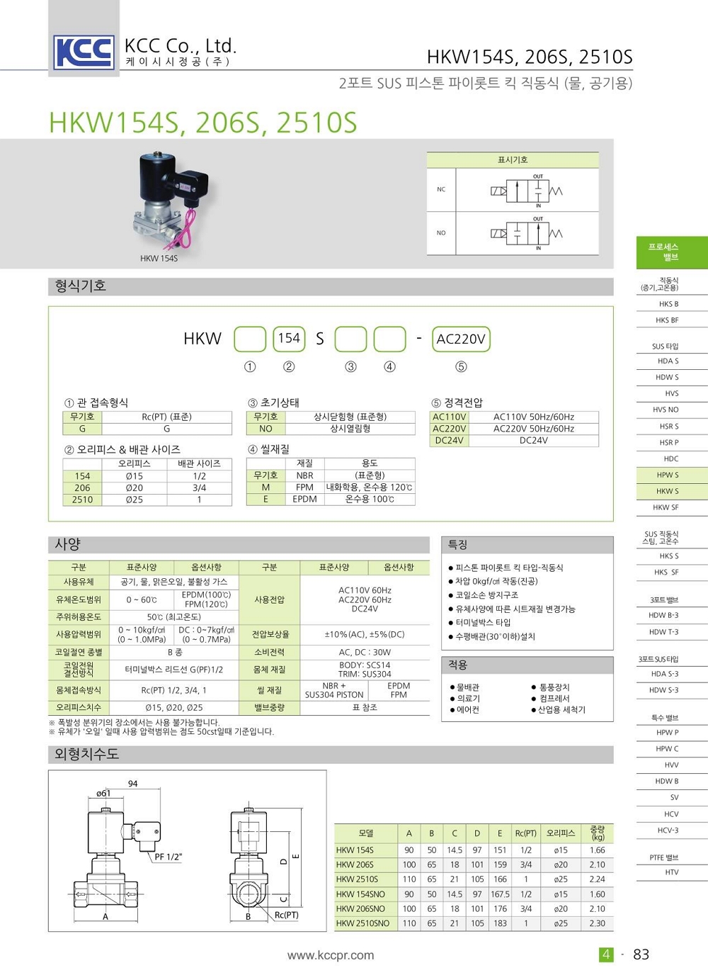 HKW 154B 206B 2510B 시리즈 2포트 암나사 Rc(PT) 1/2~1인치