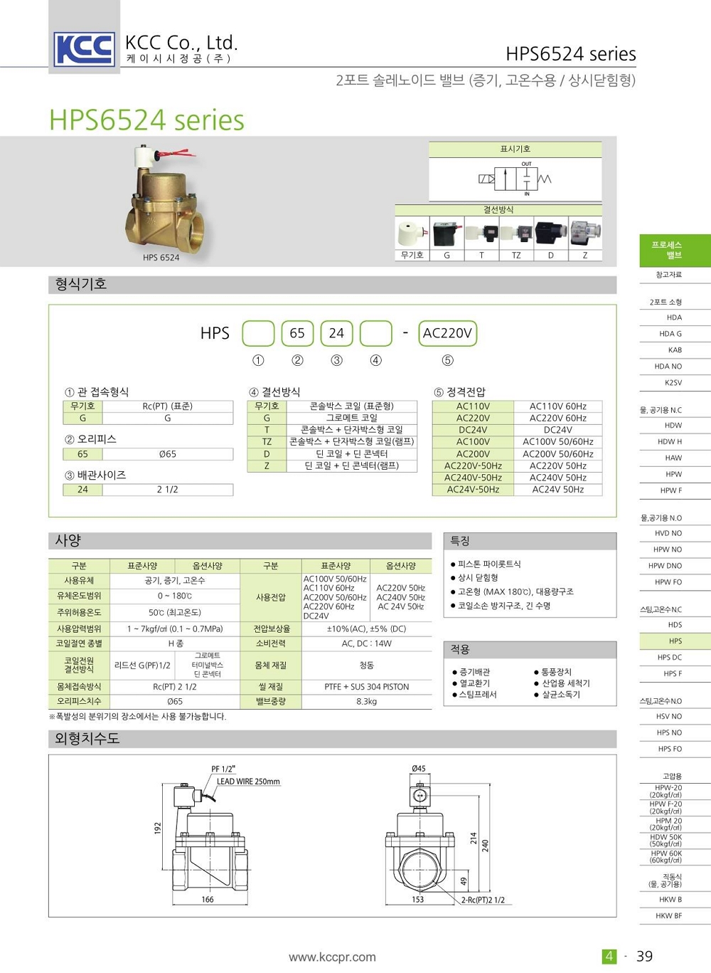 HPS 6524NO 시리즈 2포트 암나사 Rc(PT) 2-1/2인치(65A), max 180도