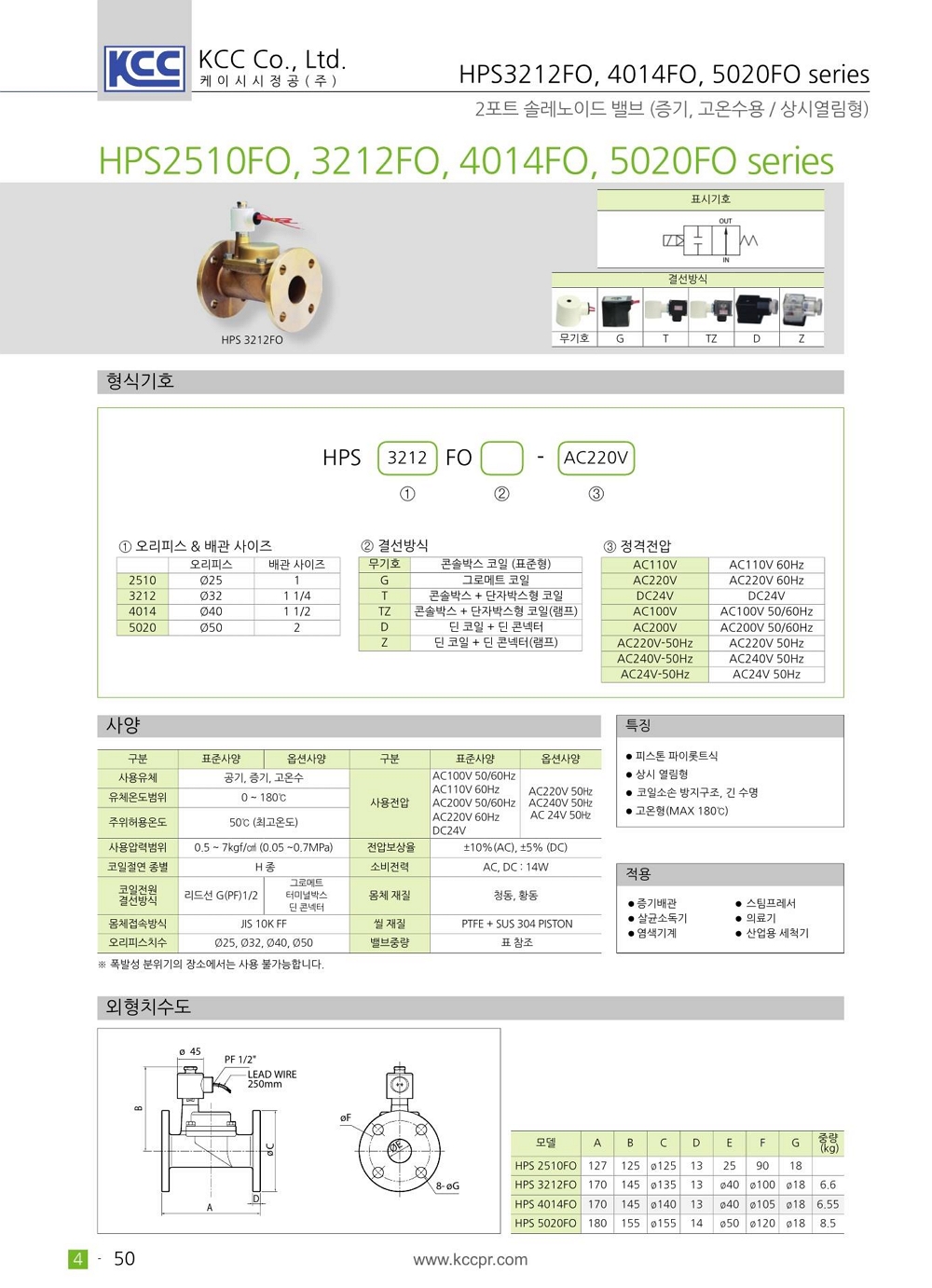 플랜지 JIS 10K FF 피스톤 파이롯트식 상시열림형 고온형 max 180도 최소작동차압 0.5kgf/cm2 (입구>출구) 필요 코일 소손 방지 구조 및 긴 수명 |