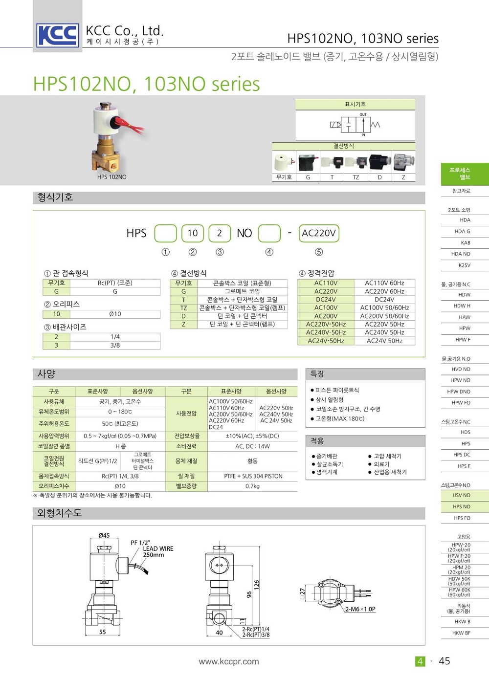 HSV 102NO 103NO 154NO 시리즈 2포트 암나사 Rc(PT) 1/4, 3/8, 1/2, max 140도