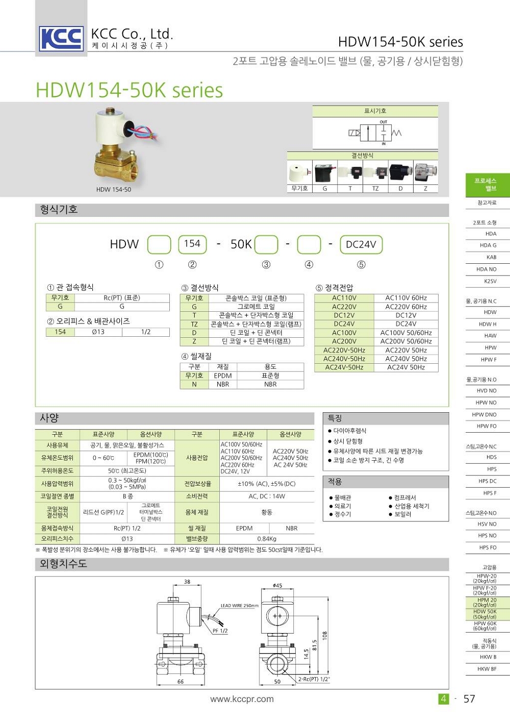 HDW 154-50 시리즈 2포트 Rc(PT) 1/2, 고압 max 50kgf