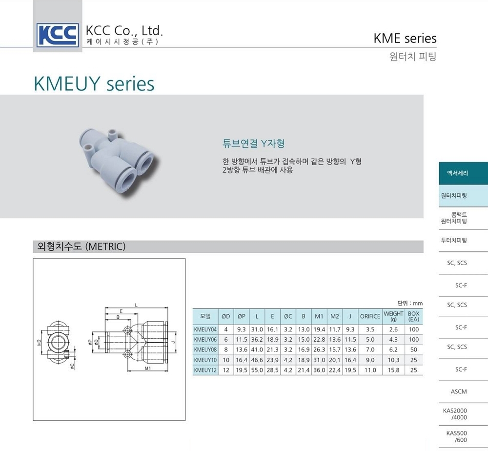 튜브연결 Y자형 (아이보리) / 튜브(metric)-튜브(metric)