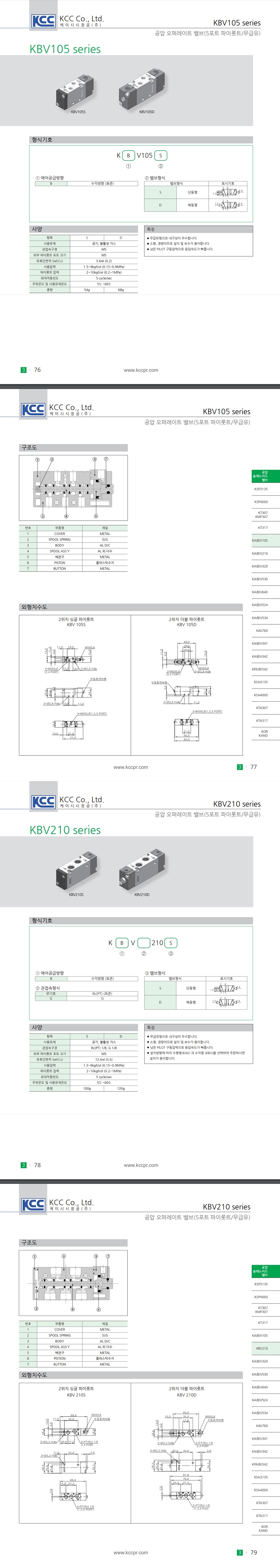 KAV KBV 시리즈 5포트 Rc(PT) M5 1/8 마스터밸브 파이롯트/무급유
