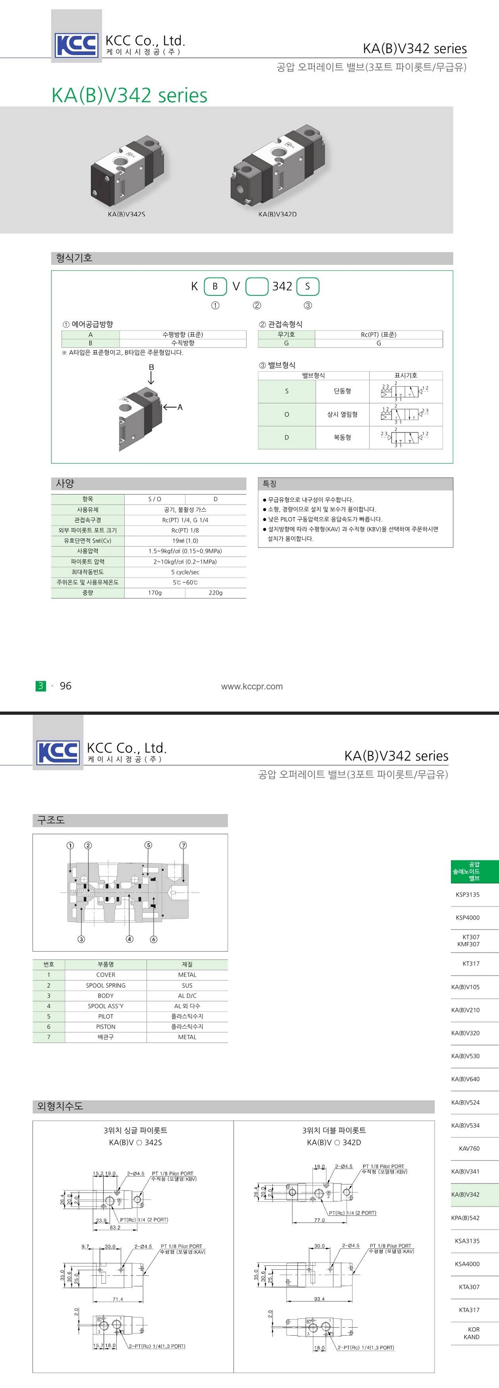 KAV342 KBV342 시리즈 Rc(PT) 1/4 마스터밸브 파이롯트/무급유
