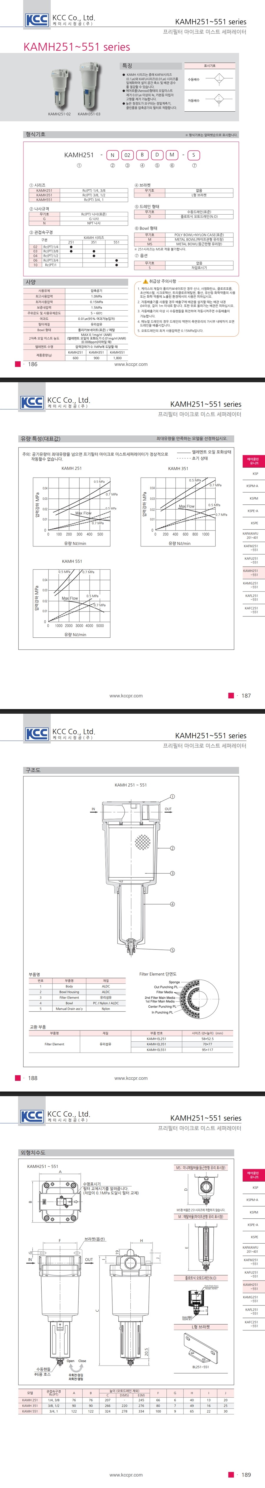 | 체크포인트 | 상세페이지 제품 사양 및 취급 시 주의사항 확인 후 적용 바랍니다. KAFM 시리즈 3/8' 사이즈는 251 과 351 선택 가능하며, 351 제품 크기가 더 큽니다. |