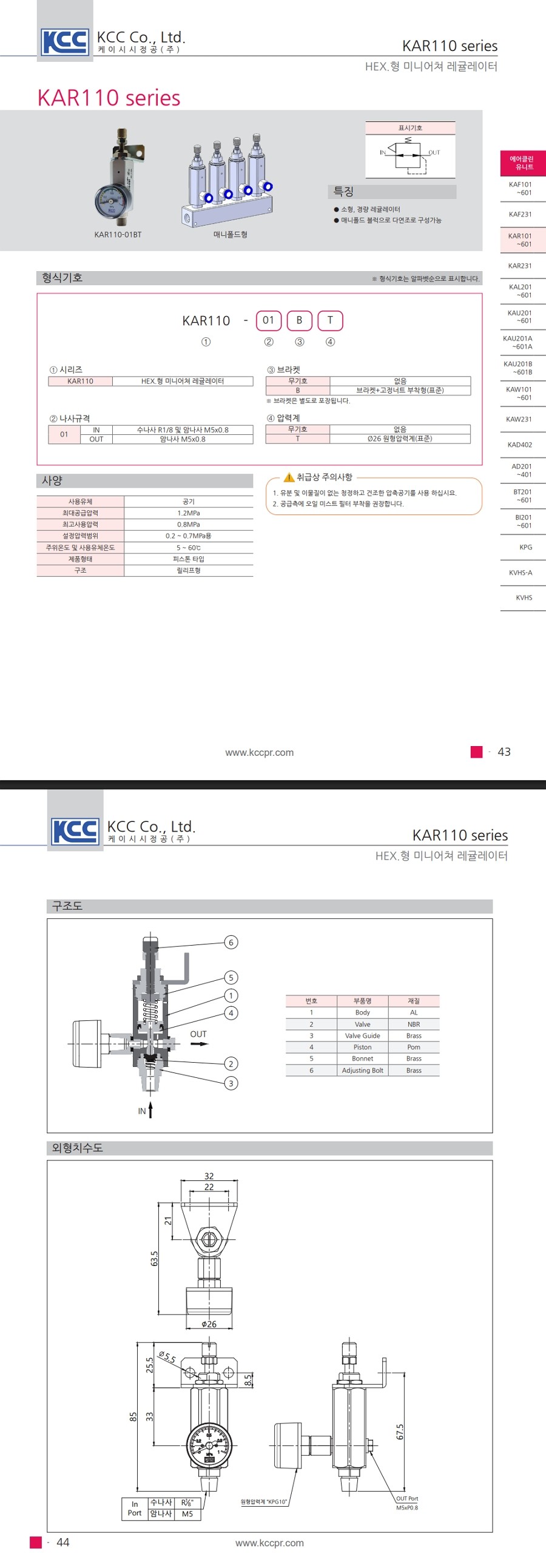 KAR110 시리즈 0.2~0.7 Mpa HEX형 피스톤타입, 매니폴드 다연조 구성
