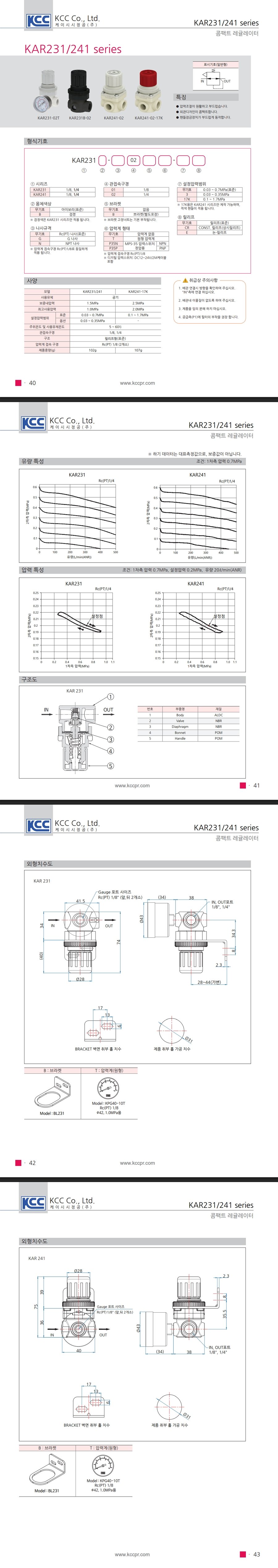 KAR231 시리즈 Rc(PT) 1/4(8A) 릴리프 방식 0.07~0.7MPa (압력범위옵션)