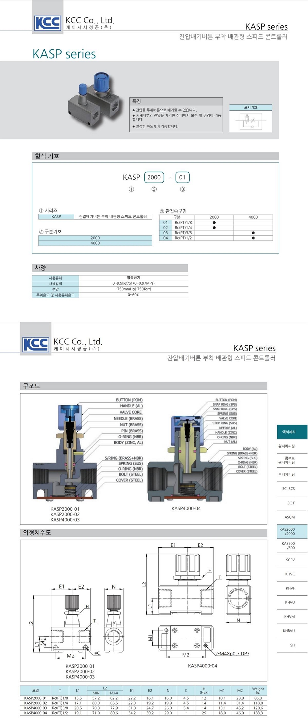 KASP 시리즈 잔압배기버튼 부착 배관형 스피드 콘트롤러