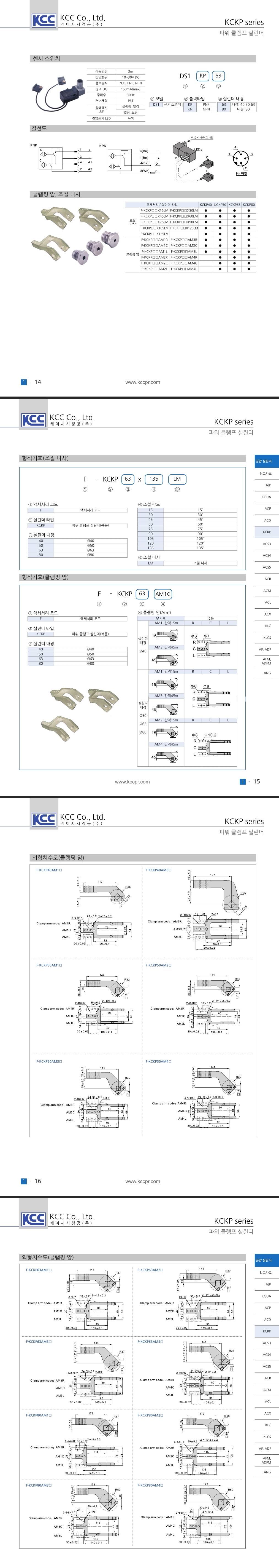 [KCKP 시리즈] 내경 63파이 PNP 출력 복동 파워클램프 실린더 / 15도~135도 열림각도 수평암