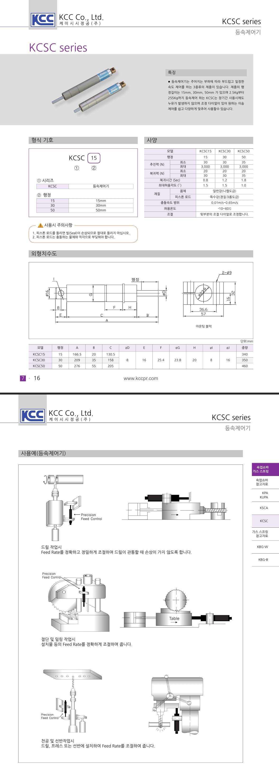 [KCSC 시리즈] 15mm, 30mm, 50mm 행정길이 2.5Kg~ 255Kg 등속 제어 이송 제어
