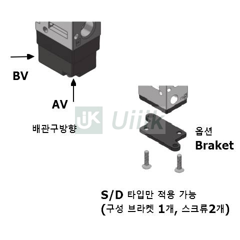 무급유형 내구성 우수 소형밸브로 설치면적 최소화 브라켓 부착 주문시 수직방향 설치 가능, 설치 용이 |