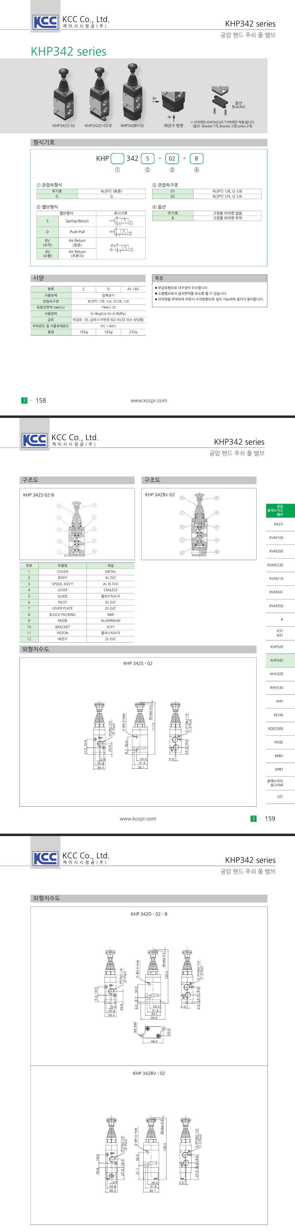 KHP342 시리즈 3포트 핸드 푸쉬 풀 밸브 Rc(PT) 1/8 1/4