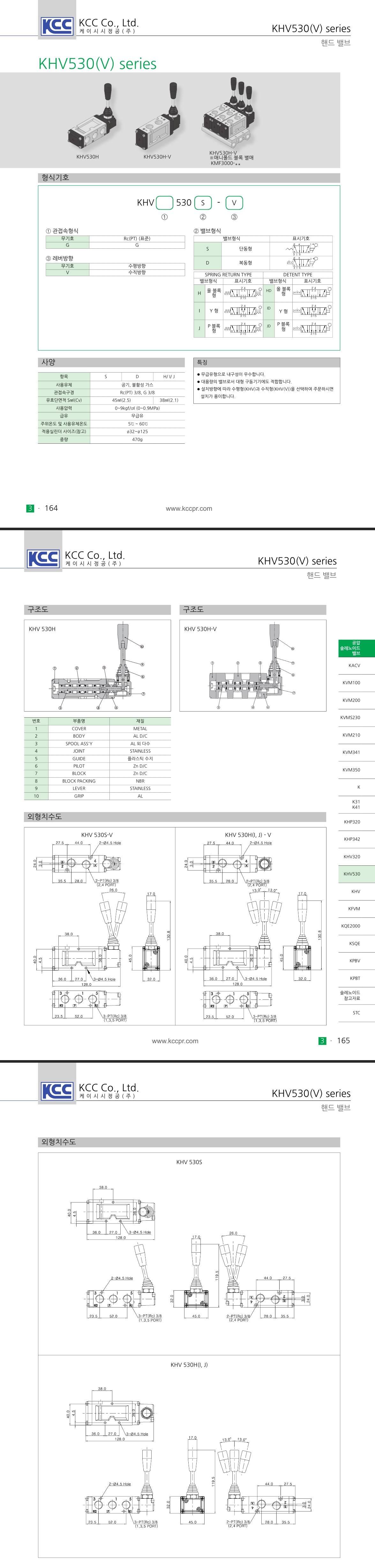 KHV530 시리즈 5포트 핸드 밸브 Rc(PT) 3/8